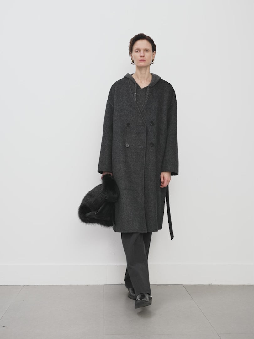 Ce manteau ceinturé en laine et soie, d'un élégant gris foncé, est une pièce luxueuse et raffinée. Confectionné à partir d'un mélange de laine de mouton, de soie de m?rier et de poil de lapin, il offre une chaleur optimale tout en étant doux au toucher. Avec son col en V flatteur et sa coupe ajustée, ce manteau est parfait pour les journées fra?ches. Rehaussez votre style avec ce manteau haut de gamme, idéal pour des occasions quotidiennes ou formelles.