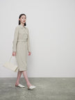 This elegant dress with a classic collar and long sleeves is enhanced with a belt to structure the silhouette.