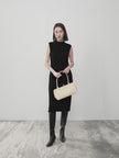 Women's Black Round Neck Sleeveless Wool Knit Dress