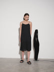 Women's Black V Neck Silver Tiny Shiny Fabric Slip Dress