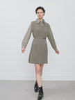 Women's Brown Classic Collar Long Sleeve Wool Vest Splicing Dress