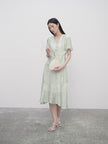 Women's Floral Mint Green V Neck Slim Fit Breathable Lyocell Dress