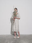 Women's Floral Light Gray Square Neck Puff Sleeves Breathable Lyocell Middle Length Dress