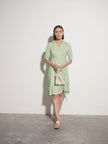 Women's Floral Light Green V Neck A-Line 100% Cotton Wrap Dress