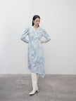 Women's Floral Sky Blue V Neck Pleated Waist Irregular Hem Dress
