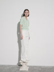 Women's Mint Green V Neck Short Sleeves Lyocell Knit Top