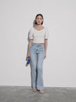 Women's White Square Neck Puff Sleeves High Quality Cotton Short Blouse Shirt