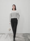 Women's White Stripe Round Neck Knit Cashmere Sweater