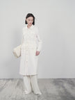 Women's White Wool Classic Collar Long Sleeve Drawstring Wasit Dress